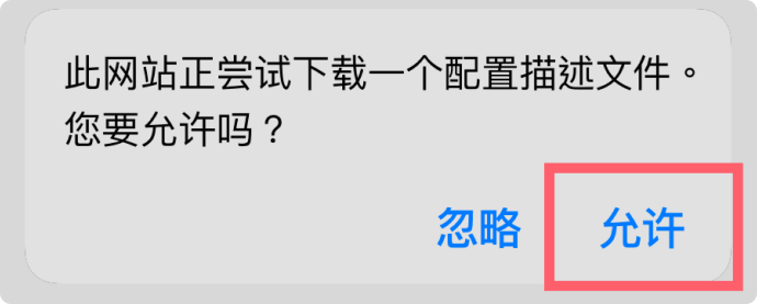 允许安装未知的来源,点击“允许”下载安装必要的描述文件